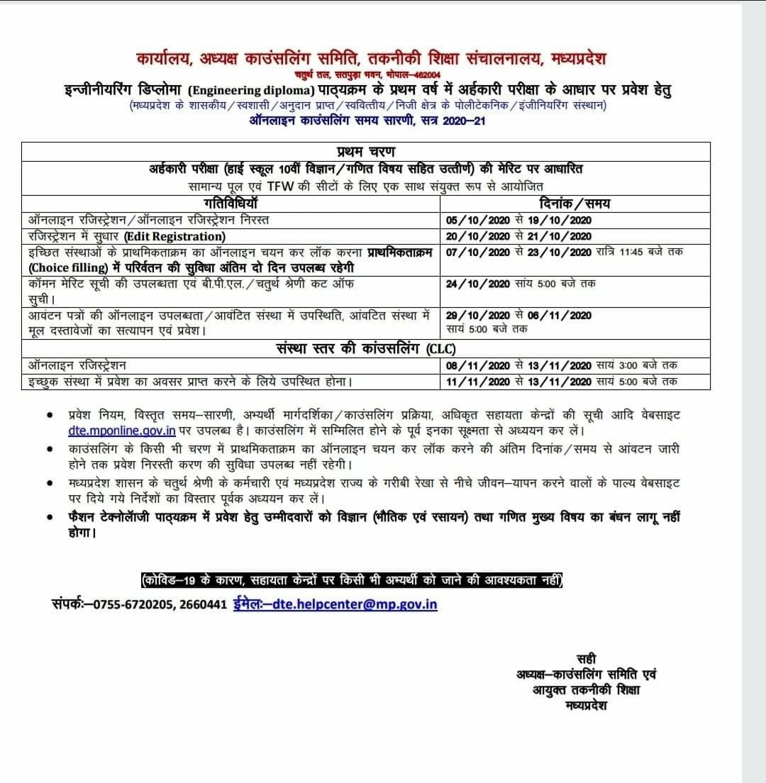 Online Counselling Time Table for Admission in Institute for Session 2020
